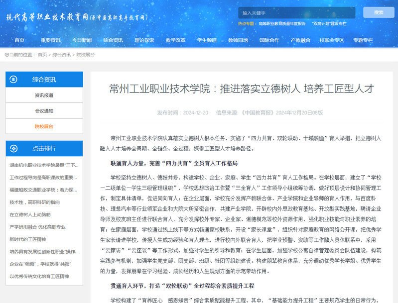 常州工业职业技术学院:推进落实立德树人 培养工匠型人才