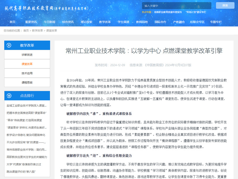常州工业职业技术学院:以学为中心 点燃课堂教学改革引擎